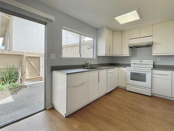 Please submit application or tour request. We will contact you to schedule for viewing. - No AC. One wall furnace on each level. - One designated carport space. Plenty of free community parking spaces. - Two-story end unit townhouse. - Upgraded kitchen and bathroom. - Electric range with range hood vent. - Back yard/ Patio with storage shed. - Convenient location close to BART, Fremont Hub, shopping centers, hospital, Central Park. - Washer and dryer provided in unit. Rent $3050. Security Deposit $3400. Minimum one year lease. Minimum one year lease. Rent $3050 per month. Security Deposit $3400. Water included. Tenant pays all other utilities.