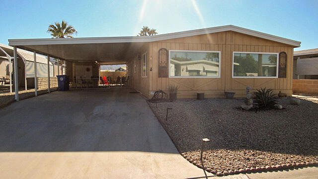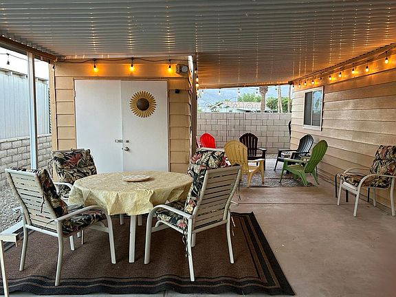Enjoy Resort Living in this great location in Palm Desert Greens. The recreation area with the swimming pool, shuffleboard courts and library is just down the street! The home sits on a unique lot with mountain views from both the front and the back. The patio backs to a cul de sac with a great mountain view. There is space to park both your car and your golf cart in the driveway as well as a golf cart shed with an air conditioner. Upon entering the living room/dining room you are greeted to laminated flooring and energy efficient windows from which you can enjoy mountain views. The kitchen family room area is accessible to the patio and features an eating bar. The bathrooms have new vanities and are adjoined to the bedrooms. The newer AC and furnace with the updated windows make for energy efficiency. This home comes partially furnished and is ready for affordably desert living. Owner may carry with the right terms. Call for a tour!