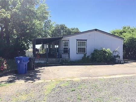Manufactured home in a country setting with amazing valley views! Separate living and family rooms with vaulted ceilings, skylights and laminate wood flooring. Master bedroom is separate from the others and has a soaking tub. Kitchen is spacious with lots of storage and a dining nook area. There are dual pane windows throughout, ceiling fans, inside laundry, 5 year old roof, newer well pump, RV pad, 3 year old HVAC unit, fenced yard with sprinklers, outdoor sheds, covered carport and huge covered front porch! Very quiet and beautiful setting!!