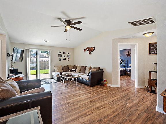What an inviting place to call home! This 2004 built 3 bedroom/2 bathroom features an open concept and split floor plan. Recent updates include: tastefully repainted exterior & interiors; continuous Pergo flooring w/new trim; refreshed kitchen cabinets & hardware; modern fixtures; master bathroom vanity; and more. Spacious backyard w/brand new sod & sprinkler system. New stamped concrete patio for entertaining. Ample parking space for your RV (new cleanout) and outdoor summer escape toys. Access the backyard through double swing gate entries from front or side. No adjacent neighbors on three sides of the property. All kitchen appliances included. What are you waiting for - view today!