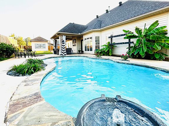 Beautiful custom-built 4 bedroom home on level, cul-de-sac lot in convenient Legacy Village subdivision. Minutes from everything in Benton & Bryant. Interior features crown molding throughout, high ceilings, stained concrete & hard wood floors, ss appliances, open great room with surround sound. The Large master suite offers with walk-in closets, shower & whirlpool tub. The backyard is a mini-paradise with covered patio and excellent radius gunite pool w/planter water fountains installed in 2019 by Backyard Creations. Fully fenced and outside Shop/storage shed with electricity. 4th bedroom is upstairs, could also be a bonus room. New dishwasher 2024, agents please see Confidential remarks for additional information and prior to submitting offers.