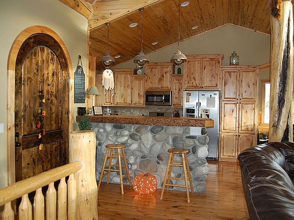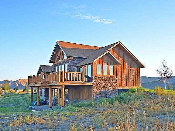 RIVERFRONT. One of a kind! Located in the heart of Idaho’s Big Lost River Valley, 40 minutes from INL, less than 10 miles to Mackay, ID and less than an hour drive to Sun Valley over beautiful Trail Creek summit pass, this property has everything you’ve dreamed of including Big Lost River Frontage and beautiful 360 degree views. At the end of a private lane a 3800+/- sq. ft. home was built in the fall of 2010. This home has custom hand peeled log accents throughout the home. The great room has a ~20 ft cathedral ceiling with custom log purlins and open trusses with hand peeled logs up to 18” in diameter. The great room also has a very large “river rock” gas fire place. Large alpine windows and windows in the log trusses at each end of the great room allow natural light into the room while giving the best views anyone could ask for. There is a balanced mix of tongue-in-groove pine and sheetrock throughout the home. This home has 6 finished bedrooms and 3 full baths including a partially finished walkout basement. The rustic kitchen has lot’s of cupboard space, granite counter tops. The kitchen also boasts a custom half-wall/breakfast bar made out of a thick slab of a large lodge pole pine. There are custom wood floors in the kitchen, dining room and hallway. The dining room leads out the back of the home to a 500+/- sq. ft deck with log railing. The basement has a wood burning stove and an insulated “cold storage” room, unfinished theatre room, a partially finished family/game room, a hot water line that runs outside to the back for a future hot tub, and a gas line that runs to the upper back deck for a barbecue grill. The Master suite has a large walk-in closest, a large master bath with an awesome walk-in shower! The Master suite also has access to the upper back deck. The main structure of the home was built using energy efficient Structural Insulated Panels (SIPs). The home has a custom built log ladder which leads to a unique loft which has additional storage space, bookshelves and a bedroom which has a private deck. There is also a large mud room with a deep sink and a large separate laundry room on the main level. All the doors in this home are custom made solid wood doors, including a massive 8 ft tall by 4 ft wide arched front door, complete with a “speak-easy” opening. Although this house has two fireplaces, it also has central heat and air conditioning. This home comes with twenty three acres of property and has the Big Lost River bordering one entire side of the property. Moose, Deer, fox, bald eagles, geese, duck, and many other wildlife abound here. A foundation is in place on the property for a large shop/barn or 2nd home and has a separate septic, power and water already at the building site. There are also two corrals (including a round corral) and shelter for horses, a nice 8x16 wood sided shed, and a very unique chicken coop. The lower end of the property has a shaded campsite complete with a large fire pit and sitting area, a great place for family s’mores around the campfire or to have friends and family over for a camp-out with the river running by. Great fishing too! Imagine walking right out your door every evening to go fishing.