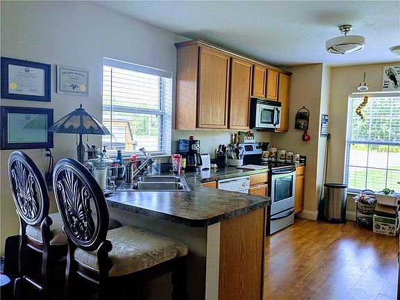 FIRST TIME HOME BUYER?!?! Check out this Quaint Two Bedroom, Two Bath Home Built in 2007!!! While sitting on your Front Porch, you will enjoy what the Florida Outdoors has to offer, with the View of the Woods in the front and back of your house which is completely Fenced in!! Only Minutes from Lake Pierce, which is one of the Best Bass Fishing Lakes around where catching a 4 or 5lb Bass is Common!! This home has an Open Concept with Beautiful Floors that flow throughout the Home. Kitchen has space for an Eat in Kitchen and Breakfast Bar where everyone can gather while enjoying each others company. It also has space for your Dining Room table that seats 6. Your living room has Vaulted Ceilings with Lots of Natural Light to enhance your Wood like flooring. This home has a 1 Car Garage with Extra parking in the extended driveway. This area is UP and COMING and desirable to live in, so don't miss out on the Cozy home while it's for sale!!