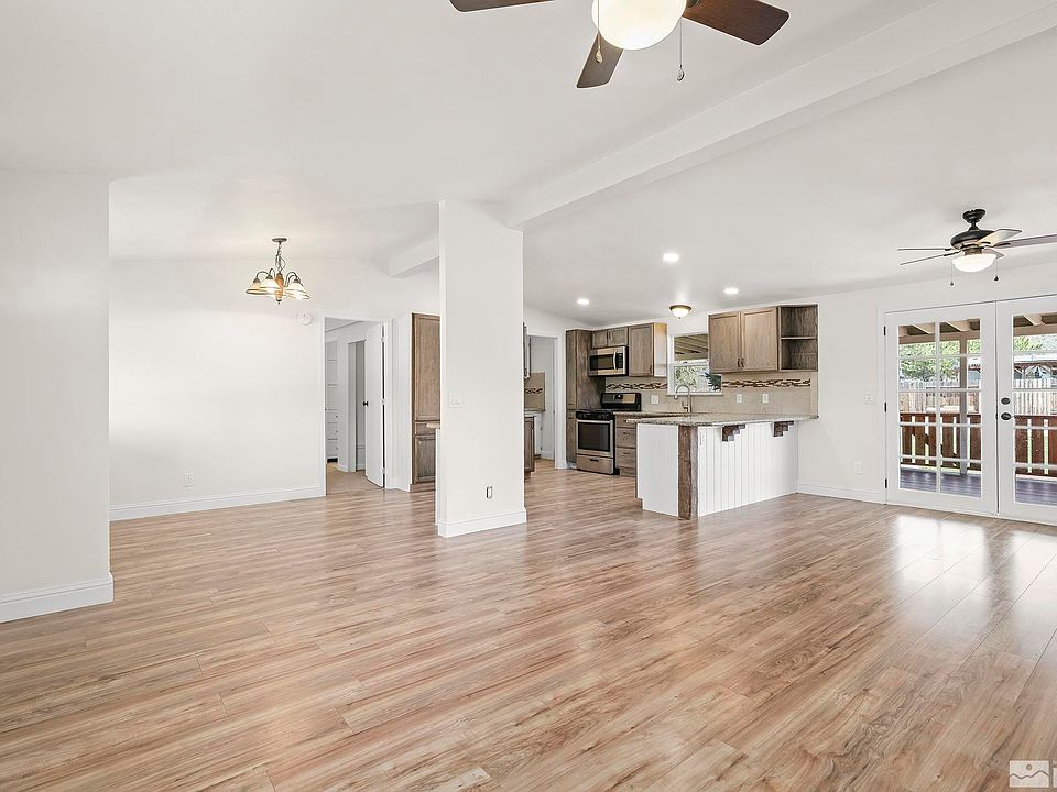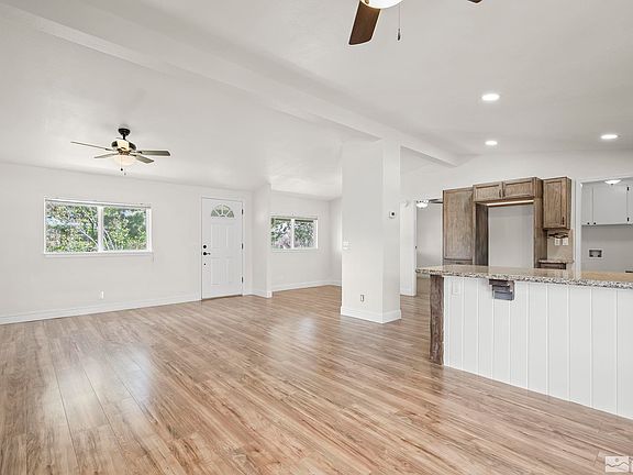 Tall Pines, Smooth Lawns! Check out this 3/2/2 with a Large Lot. Features: Open Concept, Granite Countertops, Stainless Appliances, Gas Stove, Hardwood Laminate Waterproof Flooring, Breakfast Bar, All Drywall Replaced w Modern Luxury Style Texture, Recessed Lighting, On Demand Water Heater, Modern Guest Bath w Tile Shower, Master Bath Features Walk-in Dual Head Floor to Roof Tile Shower, Newer Windows Throughout (1.5 Years New), French Doors out to the Huge Covered Party Deck., Laundry room has Cabinets & Sink w Electric set up for W&D, RV Access on Both Sides (with RV hook up) (Great for all the Toys!), Workshop in Garage, Roof is 3 years New, Firepit with Paver Patio, Lush Pine Trees, Fruitless Cherry Tree, Sprinklers Front & Back, 2 Stage Furnace & Central A/C, Close to 3 Parks, Frequent Food Trucks, Bar & Grill, Dog Park, Close to BLM Land, Off Road Trails, Mountain Views, Daycare Center, Community Center with Gym. Come take a Look! BACK ON THE MARKET (Buyer could not close on their current home to buy this in a timely manner) No inspections or appraisal done.