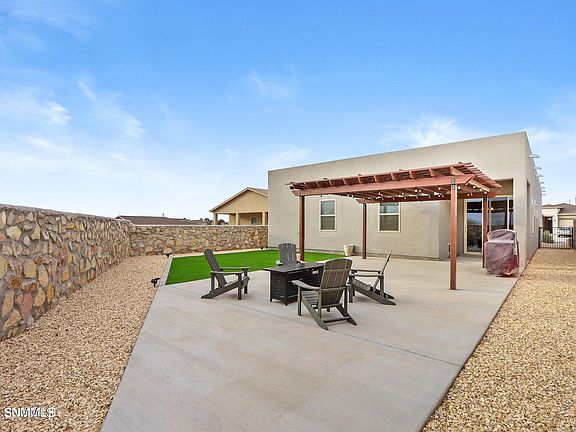 This is a 4 bedroom, 2 bathroom home with 1822 square feet of living space. You will find an open floor plan with mostly tile flooring - except for the three guest bedrooms, granite counter tops throughout, and stainless steel kitchen appliances, which all convey. The backyard features an extended patio, rock landscaping, artificial turf and a charming pergola! The garage has an EV charging outlet.