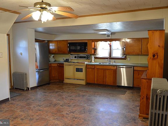 Come see this 4 b/r 2 bath home that was well built in 1933. Hard wood floors through out. Basement has a large fireplace currently hooked up to propane. Large eat in kitchen. 2 bedrooms downstairs and 2 bedrooms upstairs. Has a 3 b/r 1 1/2 bath doublewide home on a foundation included on the 4 1/2 acre lot. Several out buildings on the property. 1 car garage w a basement workshop area plus several additional buildings can house cars, or can be used for storage. One building was once used for chickens. Large pond on property as well. Double wide on property was rented. Great potential for income!! Double wide approximately 1964. 2 wells. both work. Currently sharing one outside well. Cesspool septic.