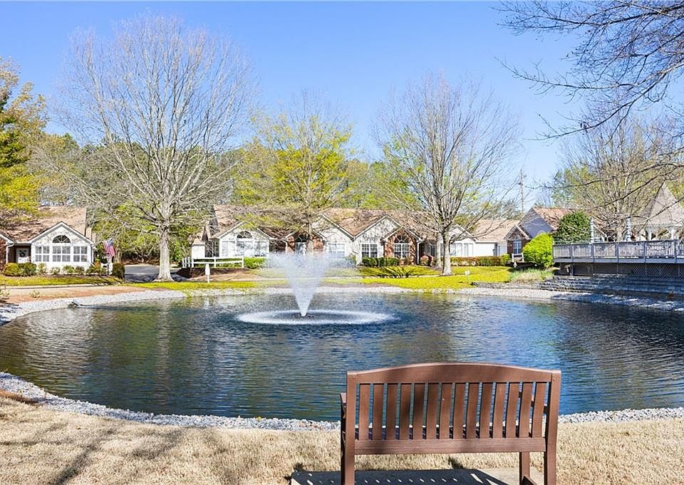 Welcome to the newly renovated Condo with the best view of the ponds in the Vineyards of Kennesaw! Check out the photos! This is a great condominium complex near shopping, restaurants and I-75! The kitchen has white cabinetry, an extra double door cabinet that is not in any other units, and the refrigerator remains! It's amazing how spacious the living room/ dining room is. You can fit your large table and chairs as well as a large breakfront to show off your beautiful china! Plantation shutters are on each window! The primary bedroom is very spacious, will fit a king size bed and 2 night stands. it also has a palladium window! The primary bath has double sinks, shower and huge closet! In 2020 new roofs were installed on all homes in the complex at no extra charge to the residents! New paint, new quartz countertops, new kitchen sink, new garbage disposal, new LVP flooring. HVAC replaced in 2021. The clubhouse is a busy place, and you can be as active as you want to be, including brunch on the first Saturday of most months and many parties! There is a fitness room and a library in the Clubhouse as well. Walk around the two ponds or just sit on a bench. It is extremely relaxing!