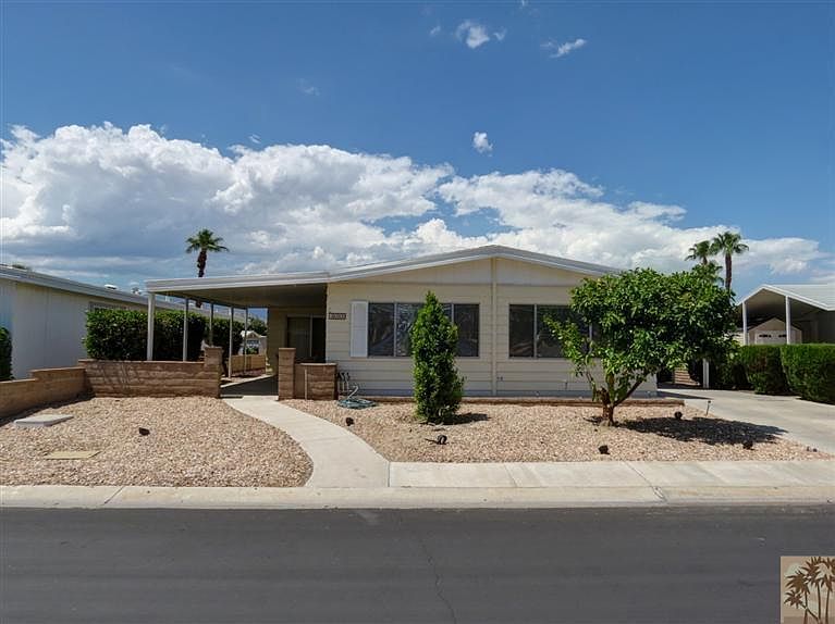 The original owners have decided to sell. House is mostly original but in good condition. The landscape is very low maintenance and the front patio welcomes you. Home offers two bedroom & two baths with approx 1760 sq ft. Master Bedroom has a walk in closet. Master bath offers dual sinks, separate tub & shower. Some extra features of the home are; A/C was service & filled with Freon in June 2013, the roof was replaced in 2002, wired alarm system with motion detection, automatic sprinkler system for yard & a swamp cooler for energy efficient cooling during moderate temperatures. The HOA dues in Palm Desert Greens are just $251.00/pm which offers FREE golf, plus three pools, spas, sauna, exercise room, tennis courts, bocci ball & other activities & several social clubs to join for your enjoyment. The Club House is lovely & the restaurant offers great food.