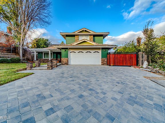 Highly sought after Dutch Haven property in the heart of Newbury Park. Owned by a contractor, this home has MANY upgrades. Starting with the amazing curb appeal. As you drive up you'll notice the Angelus Castle Cobble II stone paver driveway and upgraded energy efficient Milgard windows throughout. With approximately 1000 sqft addition from the original floor-plan, a spacious second master suite and split bathroom, and gorgeous family room with additional fire place, were added. Almost everything has been completely redone from its original 1970's build. Upon entering the home the downstairs invites you in with rustic birch hardwood flooring, while smooth ceilings, bullnose corners, solid core doors, and recessed lighting adorn the property throughout. The kitchen has been completely transformed offering knotty alder cabinets, custom tile backsplash and granite counters, with direct water access above the gourmet oven/cooktop combo. The spacious addition of the new family room is perfect for entertaining or hanging at home with the family. The upstairs offers 4 bedrooms with 2 master suites. The new master suite with high ceilings offers a unique split master bathroom setup. The room also has a sizable balcony overlooking the spacious and private backyard. Some of the other and often overlooked upgrades the seller has performed over the years include a new front entry and side yard gate, metal siding, solid core doors throughout, custom iron work throughout, plantation shutters throughout, crown moulding throughout, architectural ceiling details in the bedrooms and the kitchen, Decora plugs and switches throughout, 7:1 Surround sound in the family room, custom stonework and masonry inside and out, basketball court, 100 gallon water heater, concrete tile roof, upgraded 200A electrical panel, newer heater and A/C units, lace textured exterior stucco, workshop/storage setup in garage, storage shed in the backyard, all inside of a large and useable 11K lot. Come secure your piece of the Conejo Valley lifestyle right here in Newbury Park.