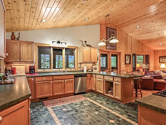 RiverBend finds this custom-built quality 2006 home on the edge of Lac du Flambeau and Boulder Junction on the beautiful TROUT RIVER. Enjoying 646 +/- feet of frontage with 35 privacy acres of land. Just gorgeous and so unique. A panoramic view has made this a successful retreat to the owners and also a very successful 5-star rental for the past 4 years providing a very healthy income. Offered with COMPLETELY quality furnishings including watercrafts. Designed home features a nice blend of custom tile & quality wood floor with a spectacular Northwoods feel of wood interior walls highlighted with a romantic field stone fireplace. Two Lg bedrooms up & one down. Walkout to frontage! 2 bathrooms. A front wrapping screened porch is sooo tastefully north, you can’t leave it. This is a two-parcel property including long private road that insures privacy. Internet at location. Hide here, build the memories, enjoy the many near lakes and perhaps build a little wealth if you like.