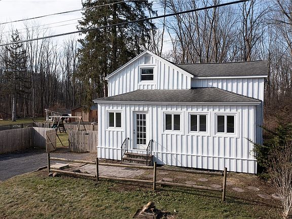 Here is your opportunity to get into the award winning Skaneateles school district for what you might pay in rent with a home with many new updates! This home is in close proximity to the Skaneateles Community Center and downtown village center is only a 20 minute walk. The first floor features a large mudroom, living room, 1 bedroom with closet, large dining area, and a new kitchen and stainless steel appliances. The upstairs includes 2 bedrooms and 1 full bath. The second bedroom could be made into a large walk in closet which would then make the entire second level a huge master suite. The detached 18'x16' garage was turned into a studio space and has tons of potential! It can be used as an art studio, office, theater, man cave, she shed, bunk room for an airbnb property. Notable features: New kitchen and appliances, freshly painted inside and out, partial new roof, new central air, new flooring on first floor, double-pained energy efficient windows, high quality carbon filter and UV filter in the energy efficient furnace, new air exchanger, new sump pump, new energy efficient hot water heater, fully fenced in yard.