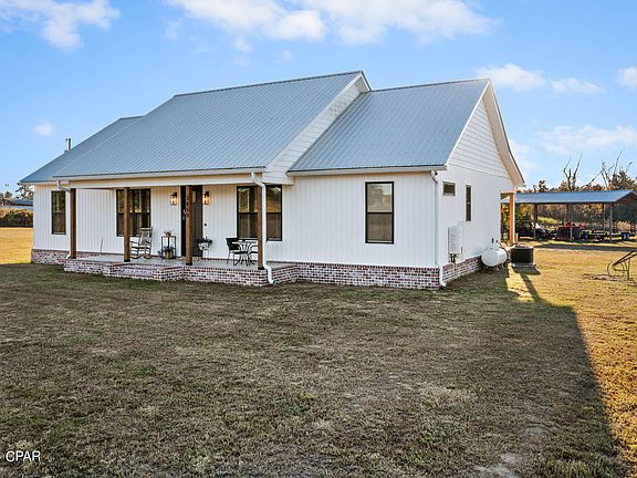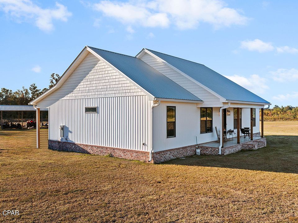 Welcome to your serene countryside oasis! As you arrive at this picturesque property, the grandeur of the sprawling oak trees sets the tone for the tranquility that awaits. Nestled within this idyllic 19.65 acre setting is a charming 2023 farm house, exuding timeless allure and old-world Florida charm. Step inside this well thought out country home, where you'll discover a split floor plan featuring 3 bedrooms, 2 bathrooms, and an inviting open floor plan characterized by vaulted ceilings. The centerpiece of the living space is a majestic electric fireplace adorned with floor-to-ceiling shiplap, creating a cozy ambiance that's perfect for relaxing evenings. Additionally, this homes double rear entrances provide a space for guests to come and go through glassed french doors that enter into the dining space when entertaining or into the back mudroom with large walk-in laundry as well as separate large walk-in pantry. Also featured inside is the custom cabinetry and kitchen island, complete with your very own wine fridge. Venturing outside, you'll encounter sprawling porches on both the front and rear of the home. The front porch is the perfect place to enjoy a morning cup of coffee while enjoying the spectacular sunrises and the back porch for sipping that glass of wine while you watch those endless sunsets unfold. If hunting is your thing, you can certainly do that here as the partial wetland in the back area of property attract deer and ducks. Or if being self-sustaining appeals to you, plenty of room for your own garden, cows, chickens or horses. Miles and miles of scenic dirt roads on which to ride your horse. Completing the property is a practical pole barn, offering convenient storage space for outdoor equipment or vehicles. Imagine spending leisurely evenings on the back porch, sipping sweet tea, and marveling at the abundant wildlife that frequents the area. With the town of Chipley and all it's conveniences just a short drive away, you can have the best of both worlds! Don't let this opportunity for quiet country living pass you by. Embrace the serene ambiance, embrace the charm of this well thought out farm home, and unlock the potential of the sprawling acreage. Whether you're seeking a peaceful retreat or a place to call your forever home, this one is sure to fit the bill!