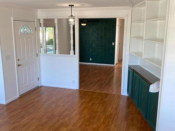 Seller will consider to carry back 80%! You own the land! Live among the happiest people in a well sought after community! Enjoy mountain views through your picture-perfect window as they cascade right into your custom crown molding that defines freshly painted custom architectural walls accented in the Living and dining area. New laminate flooring, new plush carpet in the master bedroom. Both bathrooms are partially remodeled with a soaking tub. New windows, brand new washer and dryer. New ceiling fans throughout, Stainless steel appliances. New lighting. Freshly exterior paint on the outside. Spend some leisure time on the patio overlooking a mature garden throughout the property. Park your Golf Cart in the detached shed. $400 monthly HOA fee includes 18-holes executive golfing, cable and internet, 3 community pools. Pickel ball, bocce ball, tennis courts, club house, restaurant. Green Aches is the place to be! Welcome Home!