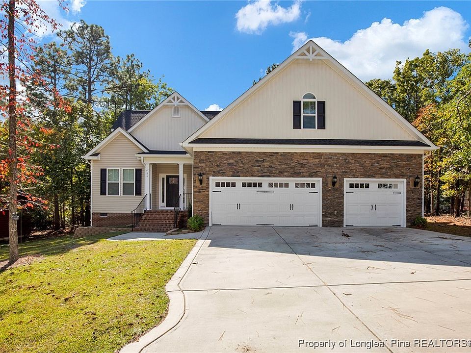 Welcome to this beautiful 4-bedroom home with a bonus room, nestled in the sought-after gated golf community of Carolina Lakes. Just a short walk from the clubhouse and pool, this home features a spacious kitchen with stainless steel appliances, granite countertops, a subway tile backsplash, and a walk-in pantry. The first-floor master suite offers a luxurious en-suite with a stunning tile shower and custom shelving in the walk-in closet. Upstairs, you’ll find spacious bedrooms perfect for family or guests. Outside, enjoy a large, fenced-in backyard ideal for relaxation and gatherings. Plus, take advantage of easy access to a range of community amenities and scenic lakes for recreation.