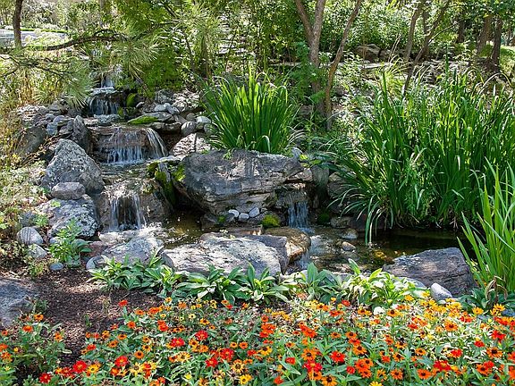 Situated in one of Castle Pines most beautiful settings on a three home cul de sac with open space behind, this rare southwestern home has the trees and gardens to compliment its exceptional architecture. With patios, rooftop decks and meandering trails through the scrub oak, you are able to enjoy the magnificent waterfall along the driveway as well as the overflowing gardens. It is truly a gardener's paradise. Hardwood floors, huge windows and doors that open to private outdoor areas exude charm and livability. The exposed beams and authentic southwestern touches add to the ambiance of every room. Experience all seasons equally with both wood and gas fireplaces. Not to be missed is the lower level walk-in wine cellar, home theater and work out room. This home represents a rare opportunity for southwest living in beautiful, amenity rich Castle Pines Village.