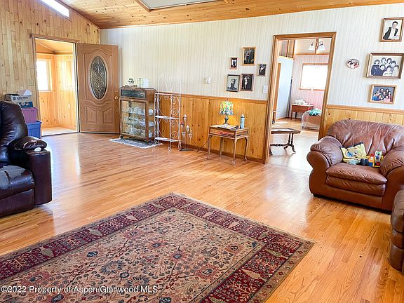 This home boasts over 4,000 square feet of living space, plus sits on an oversized corner lot! The upper level includes a spacious kitchen with dining and entertaining space. A south facing deck provides nice views over Meeker. Down the hall are two bedrooms, one that is currently used as an office/laundry room, full bathroom and then into a large living room with high ceiling and sun room to the north. The massive master suite is located at the east end of the home. Downstairs there are three additional bedrooms, abundant storage and a game room. The two car garage houses the utilities and has a workshop area. A carport abuts the garage, giving more covered parking off the alley.
