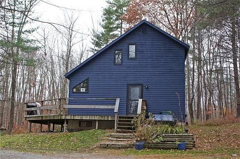 Sweet Country home on 1.5+ acres; lightly wooded and private at the end of the road. The first floor features hardwood floors, wood door and trim, and a full bath. Some newer windows and a slider to the huge wrap around deck. Vaulted living room with open dining/ kitchen living room layout. Kitchen was remodeled 3 years ago to include corian countertops and walnut style cabinetry. Second floor has two bedrooms. Large shed for great storage and lots of parking. In a convenient Richmond location.