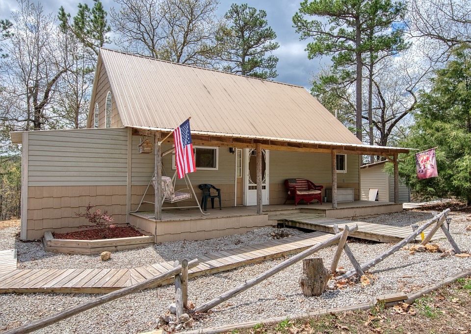 This quiet cabin in the woods is your escape! Get away on the weekends or get away permanently! This home and 9.7 acres isn’t far from Eureka Springs, Beaver Lake, or the White River! Nicely finished wood flooring, tongue and groove ceiling, and wavy-edge rustic wood accents combine to give the interior a cozy and comfortable feeling. The open loft is accessed by a log tread stair-case, and a sliding barn door opens to it’s half bath. Relax with the excellent valley views or explore your land! A compact workshop is accessed via a rollup door on the outside of the home. This sale includes all of the appliances, furniture, and furnishings! This home has a water storage system or a water well could be drilled to complete this package.