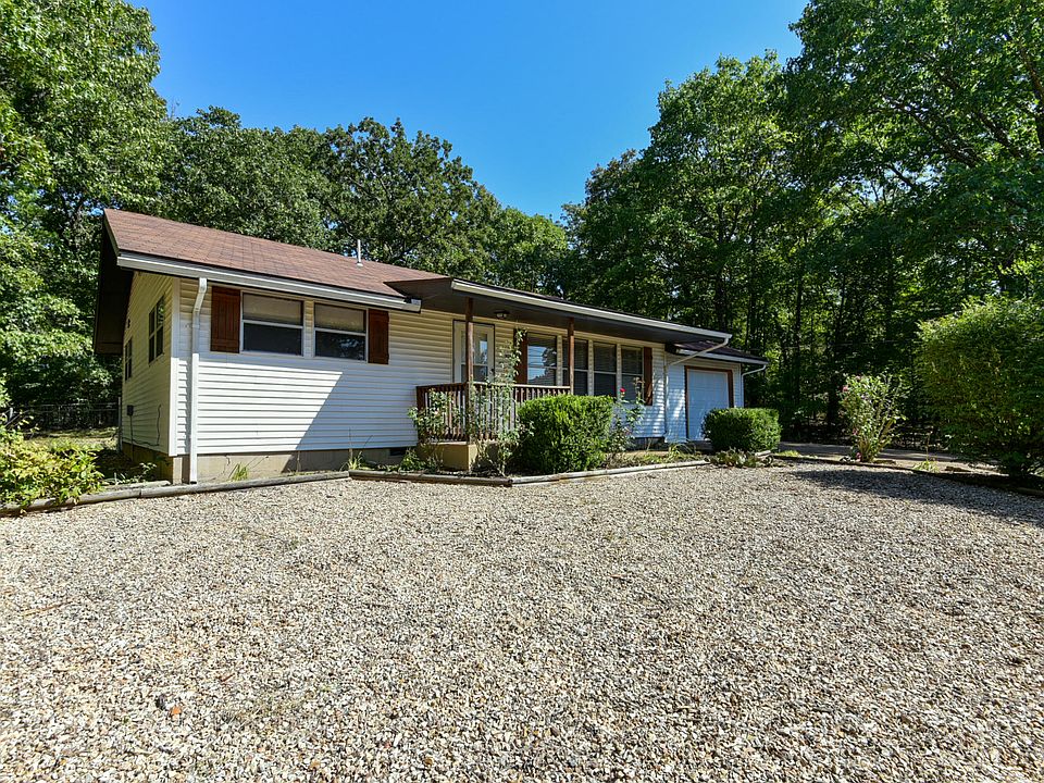 ONE LEVEL RANCH home in HIGHLY DESIRED OAKMONT COMMUNITY mere blocks away from community BOAT LAUNCH and BIG CEDAR Resort, Spa and dining!! This 2 BD/2 BA home is fully accessible via paved roads and features LOW MAINTENANCE landscaped front yard which allows for more time on Table Rock Lake!!TWO oversize storage sheds for all your lake toys or hobby space adjoin a FLAT fenced back yard which backs up to woods on TWO SIDES for additional elbow room and privacy! Home comes with attached garage for even more storage or maybe you will want to convert it into additional living quarters without expanding the overall footprint of the structure!You even get your own PRIVATE well and septic system!Located within Oakmont subdivision where $250 a year gets you access to a year-round indoor pool, hot tub, tennis court, discount campground rates (50 amp service), workout room, playground for the kids and clubhouse featuring full kitchen facilities. That's less than $1 a day for ALL these amenities!But BEST OF ALL is just a short walk or golf cart ride to Table Rock Lake to the Oakmont courtesy dock & launch!Make this your full time residence, a second home hideaway or investment property.You will love lake life in Ozarks PARADISE Village!!