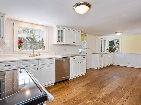 Adorable antique starter home in sought after Litchfield location! This move in ready home is filled with character and charm and includes many NEW upgrades including new Marvin Integrity windows throughout, new kitchen cabinetry, granite countertops featuring DuPont edge detailing, under cabinet lighting, new KitchenAid stainless steel appliances, new standing seam metal roofing, new premium vinyl siding and trim, new wood flooring, new quality insulation, new hot water heater and well pump and 200 amp electrical service with efficient furnace and central air conditioning, all regularly serviced and in excellent condition. The bathrooms have been completely redone with custom tile, granite, new tub, stone shower basin and vanity. Looking for a room with a view? This home also features a stunning addition built in 2015 which features a custom built stone fireplace with blue stone hearth and chimney cap, reclaimed wood mantel and wood beams. The custom designed lighting and large windows offer beautiful views. This room has so many possibilities and may be used as a first floor master with en-suite bathroom. The back yard features a wonderful brick patio with hot tub overlooking parklike grounds with a seasonal brook featuring a new footbridge. The new red brick walkway was created with beautiful stonework detailing. Minutes to Route 8 and center of town as well as Topsmead State Forest and horse riding stables. Terrific opportunity to be in the Litchfield School District!