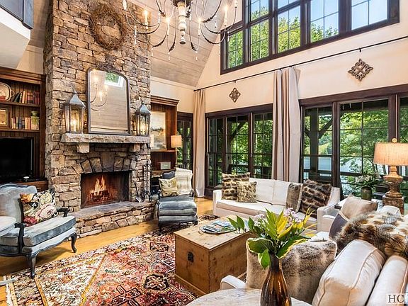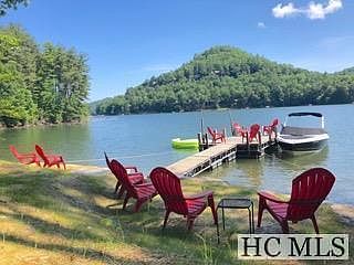 This lakefront property has it all. The charming 5 br 5.5 bath cottage sits in a private wooded setting in a desirable neighborhood that is close to town. It is a quality built home in good condition, with wood floors, fireplaces in the gathering room and master with great lake and mountain views. A wonderful lakeside covered porch for dining and conversation as well as a screened sleeping porch make for inviting outside living. The grounds offer a rare sandy beach perfect for kayaker's and children, dock on deep water with lovely lakefront area. The lakefront has stone terracing with stone walkways to the sandy beach and dock . The interior has views from each bedroom. A paved driveway with plenty of parking on a large lot with room for an optional guesthouse makes this property a desirable spot for those looking for their special place on Lake Glenville. This home offers space for a crowd with a bonus room and lower living area along with its five bedrooms and has an outstanding rental history.
