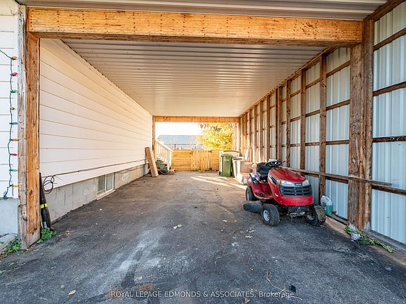 Fully fenced backyardTwo-tier deckAttached carportTwo sheds