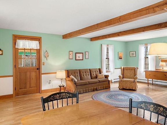 It is rare to find a property with such a great location. Continually owned by the family that built the house almost fifty years ago, this is the first time it has been offered for sale. Located on Route 119, the property abuts the elementary and middle school. Even though it is on a main road, the classic yellow cape sits above it and affords sunset views out the front door. The kitchen cabinets were custom built by a local craftsman. The hardwood floors, beamed ceiling and raised panels and wood shelving on the fireplace wall (by the same carpenter that built the kitchen) add warmth to the living room and give it a cozy feeling. Imagine a weekend breakfast or evening cocktail in the sunroom. You will enjoy views of the backyard with its stonewall and the garden that you have created. The home has been well cared for and is move in ready. However, it was built in the 70's and you may wish to do some updating. Come have a look and make this home your own.