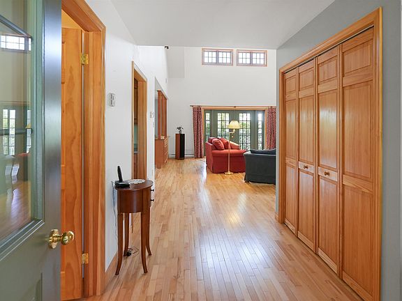 Nestled just 10 minutes from the charming town of St. Peter's and 15 minutes from the Dundee Golf Resort, this well-maintained lakefront home offers the perfect blend of tranquility and convenience. Set on 2.48 acres of pristine land, with an impressive 235 feet of sheltered waterfront in Damion's Cove, this property is a true gem. Step inside to discover a spacious 2-bedroom, 2.5-bath home with a thoughtfully designed layout. The main level features an inviting living area with a wood fireplace and a heat pump for year-round comfort. The fully finished walk-out basement includes in-floor heating, a wood stove, and a versatile room perfect for an office, craft room, or potential third bedroom. Two large utility rooms, ample storage, and a charming wine room add to the home's functionality. Enjoy breathtaking southwest-facing views, where the sun graces the property throughout the day. Outside, a 47-foot-long dock extends into 8 feet of water, providing easy access for boating enthusiasts. Additionally, a mooring located 150 feet off the dock in 30 feet of water is ideal for larger boats. The property also features a 16'x12' storage shed, a reliable dug well with a full water treatment system, a traditional septic system with a drain field, and a 200-amp electrical panel. With electric baseboard heating throughout, this home is both cozy and efficient. Experience ultimate privacy, peace, and quiet in this idyllic lakeside retreat. Whether you're looking for a year-round residence or a vacation getaway, this property offers a rare opportunity to live the lake life you've always dreamed of.