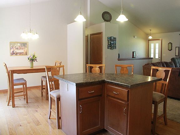 Private near new move in condition ranch featuring an awesome yard and numerous amenities. Split bedroom offering hardwood and tile floors, high quality finished basement for entertaining with bar area and 1/2 bath. Large 2 stall attached insulated garage. You'll find a well groomed yard with a thick lawn, quality landscaping and a stamped patio leading to a serenity of backyard pines.