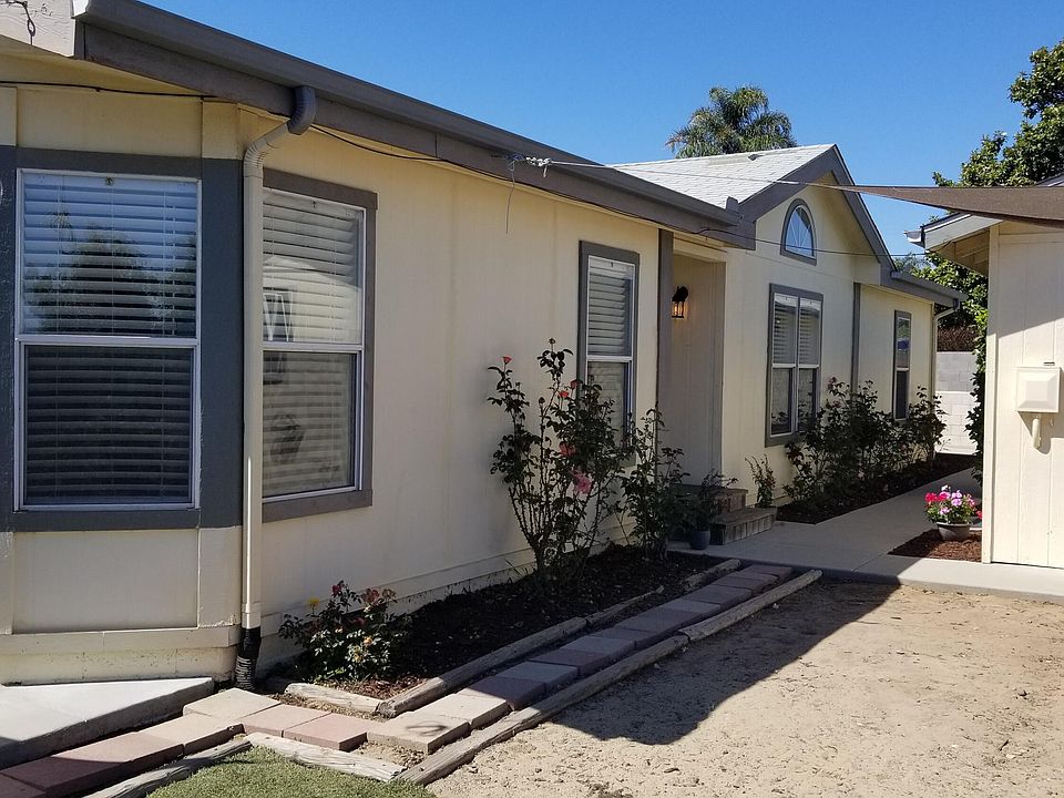 Seller motivated! Perfectly maintained beautiful & bright 2005 Manufactured 3 bedroom, 2 bath home with permanent block foundation, with 330 Sq Ft studio guest room with bath, and 1 car detached garage! Own your own land/Lot with no HOA fees in Galaxy Park, Nipomo. Great for extended family, and Possible $800-$1200 a month rental income from the studio! Secure and private fenced yard. Main home has 1400 Sq Ft with vaulted ceilings open living room, dining room, kitchen. Ceiling fans, crown molding, and primary bedroom separated from other 2 bedrooms. Fenced large backyard with fruit trees. Will qualify for regular financing, FHA/VA. Priced right! Ready to move into!