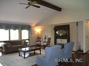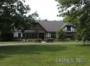 This is a very spacious English Tutor style ranch home with 5 bedrooms, 3.5 baths and sits on 1.6 acres with a semi private backyard and a circle drive with lots of Magnolia and Bradford Pear Trees. This home has wood floors in the foyer, FDR which also has a bay window, and into the Great Room where you will find wall of windows, wood burning fireplace w/ antique mantle (blower & thermostat). Kitchen has large island w/ granite & newer Corian countertops on the cherry cabinets. Breakfast area walks out to deck and has a great view of the yard. Master suite has vaulted ceiling, 2 large walk in closets, master bath with double bowl vanity, whirlpool tub, separate shower & vaulted ceiling. Walkout basement has a large wet bar/family room area that walks out to patio. It also has a bookshelf & rough in for 2nd fireplace. Basement has spacious 3/4 bath as well as 2 more bedrooms. Roof & HVAC are about 6 years old, much freshly painted, newer carpet, 3 car built in garage.