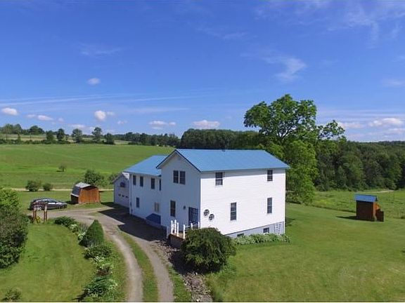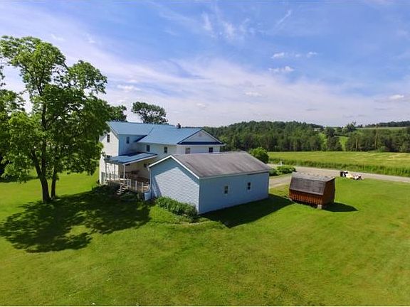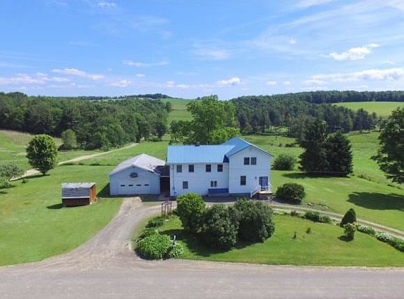 Classic 4 bedroom, 2.5 bath farmhouse located in a beautiful country setting! This home features a large two story addition with an open living room/dining room area & a master suite with private bath & walk-in closet! There are hdwd floors, 1st floor laundry, great views all around, plenty of storage & a newer furnace. Large 24 X 24 detached garage plus extra attached garage located around back!
