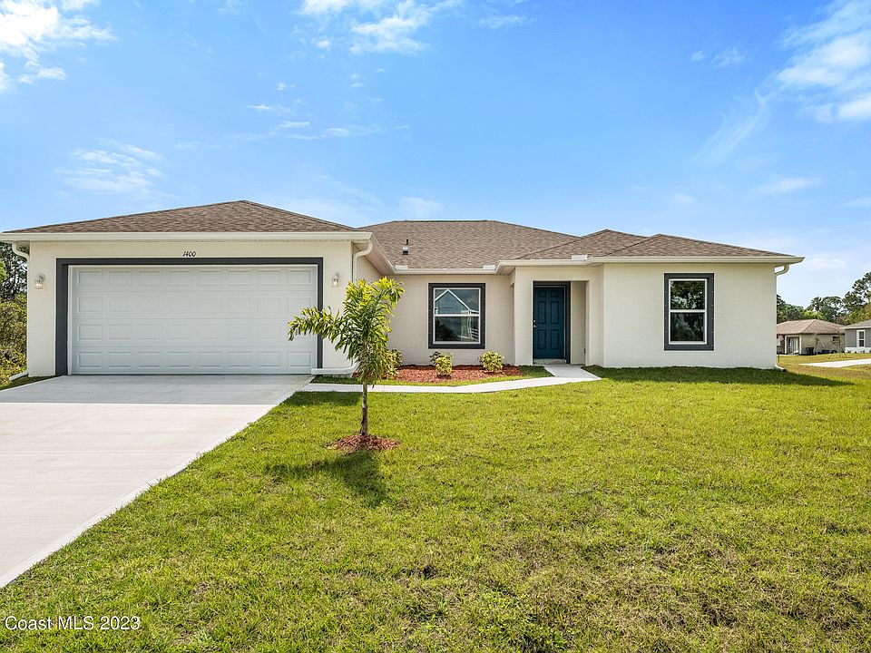 This new construction single family home is being built right now, with a 2-10 HBW, water softener system, and hurricane impact windows/doors included. The gorgeous open concept home features 4 bedrooms and 2 full bathrooms with double sinks and two walk-in closets in the primary bedroom/bathroom. Also included is a laundry room, pantry, granite kitchen/bathroom counter tops, 12 mil vinyl plank flooring, upgraded lighting package, two tray ceilings and brand new stainless steel appliances. Quick access to I-95 and located minutes away from major shopping centers, restaurants, Walmart and Publix. Photos are from the model, ESTIMATED completion beginning of March 2024. *Back door is now a solid impact door with no glass & base cabinets will be graphite grey at this address*