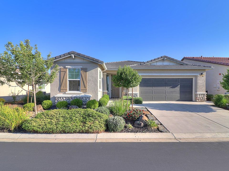 Senior Community. You must be 55+ to live here. This solar powered Reflect for lease offers sleek modern interiors on a fabulous lot facing Trilogy's largest lake with walking trails and fountains. Features include attractive tile plank flooring throughout with carpet in the bedrooms, a two-way see-through fireplace flanked by bookshelves shared by the great room and den, nice blinds, lighted ceiling fans, and chocolate-stained cabinets throughout. The open kitchen boasts quartz countertops with a stunningly tiled full backsplash with under cabinet lighting and a large central island, and the primary bed offers a slider to the back yard, dual vanities, a large shower with bench seat and a huge primary closet with a door to the laundry room. Relax outdoors on the big open-air patio with rock gardens and no rear neighbors in a fully fenced yard. Home includes water filter and fire suppression systems. The one-year lease includes all appliances, and HOA dues and gardener paid by owner. Trilogy is a 55+ community. Senior Community. You must be 55 to live here. Owner pays HOA and gardener. Tenant pays all utilities and has access to community activities. No smoking, no pets. Security deposit is $3000.00. Credit report, 2 months bank statements, and application required.