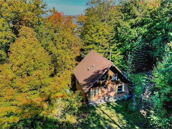 Located on 50 private acres, this seasonal cottage built in 1984 offers many modern amenities with a rustic twist. The home features a 2-level deck with a commanding view of Lake Champlain and the Adirondack Mountains! A well-equipped conventional kitchen/dining room flows into the spacious living room with a door to the main deck - a great spot to relax and take in the lake views. A large, heat pumping Defiant woodstove keeps the cottage warm on cold nights. There is a convenient 1st floor bedroom in the southeast corner of the home with a full-sized bath with fiberglass tub/shower. The rear door enters into a mudroom with washer and set tub. Drying is "on the line" for the ultimate camping experience. The 2nd floor is split between 2 large bedrooms and a 2nd full sized bath with skylight. The front bedroom also has sliding doors to a second deck with arguably the best lake views. The property also includes a garden shed, garage with 2nd story, and covered wood shed. You'll enjoy the best hunting, fishing, and hiking on your own private nature preserve! With updated permitting and improvements, this home could be upgraded to a year-round 2nd home or primary residence. State soil maps indicate suitability for additional on-site septic. With 50 acres, there are endless possibilities, like building a brand new residence at a higher elevation with even more privacy and better lake views; keeping the existing cottage as a seasonal guest house or Airbnb! Don't wait!