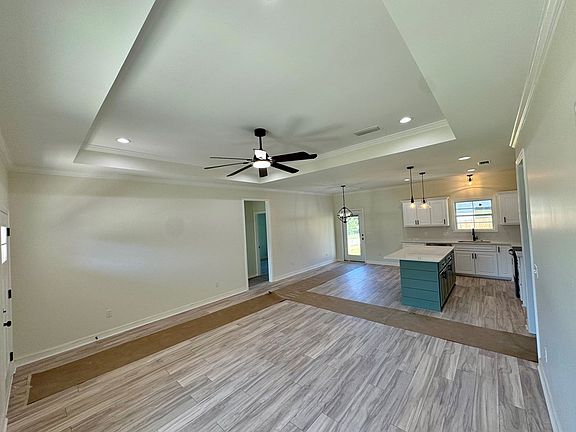 Southern charm at its FINEST! This new construction home invites guests with an open concept floor plan and vinyl plank throughout. The living and primary spaces are grandiose with trayed ceilings and crown molding details. The kitchen boasts a large center island that pops with ship lap accents and quartz countertops. Stainless steel appliances will meet all your cooking needs. The primary bedroom offers a tiled master on-suite with walk in closet and extra large tiled shower. The rain shower head will wash away the stresses of the day. Just down the hall you have an indoor laundry room and mudroom to access the two car garage. There is even a custom mud bench to drop off your stuff to and from the car. Lastly the covered back porch offers a place of retreat to enjoy the sunsets.