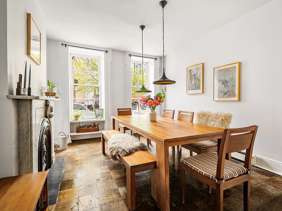 Welcome to 386 State Street, a beautiful and historic single family townhouse in charming Boerum Hill. Upon entering you are greeted by a gorgeous chefs kitchen which includes a viking gas stove and oven, Bosch electric second oven, Bosch dishwasher, stainless steel GE refrigerator, marble and butcher block countertops and exposed beamed ceiling. The back of the garden floor boasts an original wood burning fireplace, built in cabinetry and access to your back patio. The garden level also has a half bathroom. Make your way up the center staircase to find the front and back parlor. Both are large sized rooms with high ceilings and receive lovely sunlight throughout the day. One area is currently used as a formal dining room with wood burning fireplace and large windows, and the other a living room with tall built in bookshelves. This room can easily be turned into a fourth bedroom. The third level is home to the primary bedroom. There is a humongous zen bathroom with a deep soaking tub, walk in shower and double sink. A dedicated laundry area also resides on this level. The top floor consists of two bedrooms, extra storage space and an abundance of sunlight via two large skylights. Enjoy easy access to the best in Boerum Hill, as well as nearby Cobble Hill, Fort Greene, and Downtown Brooklyn. Discover wonderful restaurants such as Rucola, Grand Army, French Louie, June and many more. This home is around the corner from Atlantic Avenue, with its gorgeous home furnishing design shops and dining, and is in close proximity to Atlantic Terminal and Dekalb Market. Showings begin Sunday, May 1st. Contact me to schedule an appointment. Make your way up the center staircase to find the front and back parlor. Both are large sized rooms with high ceilings and receive lovely sunlight throughout the day. One area is currently used as a formal dining room with wood burning fireplace and large windows, and the other a living room with tall built in bookshelves. The third level is home to the primary bedroom. There is a humongous zen bathroom with a deep soaking tub, walk in shower and double sink. A dedicated laundry area also resides on this level. The top floor consists of two bedrooms, extra storage space and an abundance of sunlight via two large skylights. Enjoy easy access to the best in Boerum Hill, as well as nearby Cobble Hill, Fort Greene, and Downtown Brooklyn. Discover wonderful restaurants such as Rucola, Grand Army, French Louie, June and many more. This home is around the corner from Atlantic Avenue, with its gorgeous home furnishing design shops and dining, and is in close proximity to Atlantic Terminal and Dekalb Market.