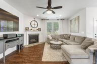 Sleek quartz countertopsFirst-floor officeSweeping golf course viewsOpen-concept kitchenEn-suite bathCovered patioCozy gas fireplace