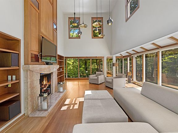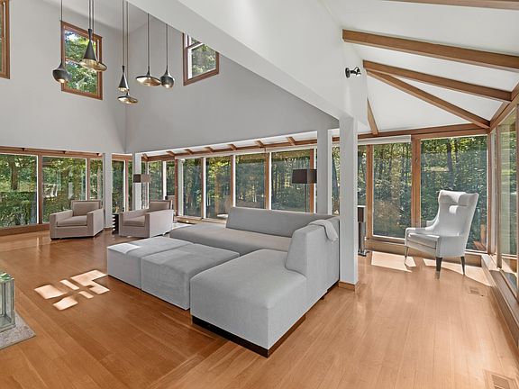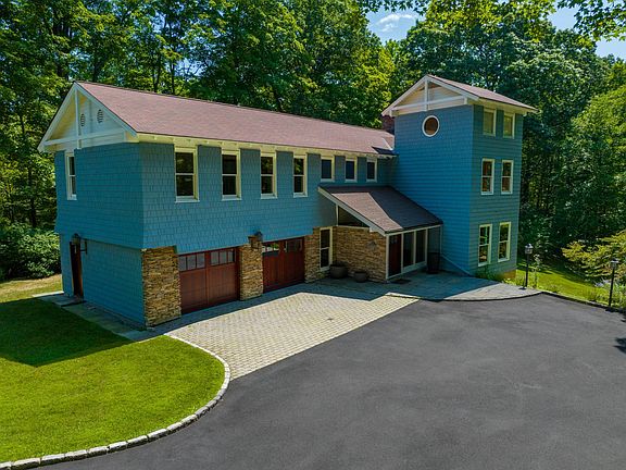 Secluded on 2.26 sylvan acres, this bright and airy contemporary features high ceilings and comfortably-sized rooms. Anchored by a fireplace, the glass walled living/family room has double height ceilings and overlooks the private backyard. The spacious gourmet kitchen with breakfast room features Wolf, SubZero and Miele appliances and leads to a covered porch and patio. There is a formal dining room, powder room and laundry room on this floor. The 2nd floor owner's suite with double height ceiling has a spectacular bathroom with Waterworks soaking tub and separate shower. There are 3 more bedrooms on this floor and 2 full baths. The finished lower levels hosts a media room, billiards room, sauna and full bath. Greenwich address with Stamford schools. Close to Banksville, NY. Tenant in place, 24hr notice required for showings. Tenant pays all utilities, no smoking Owner Expenses: Grounds Care, snow removal