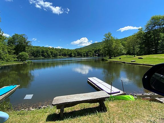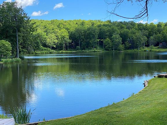 This Cabin sits on 14.2 acres and adjoins over 200 acres of State Land. Nestled back in the woods creating a private setting. Easy access to a private 10 acre Lake, perfect for Fishing, Canoeing, Paddle Boat, etc. 3 Bedrooms with sleeping loft, 2 baths, open kitchen, living room and family room. Cathedral Ceiling with stone fireplace- wood stove. If you are an outdoor enthusiast the trails throughout the 14.2 acres are great for Hiking, ATV, and of course Hunting. Beautiful views from atop. Plenty of room to add on if needed. What more could you ask for, 14 acres, secluded, seeing and listening to the brook while enjoying the decks- fire pit-,hunting-walking trails, etc. Cozy and welcoming. Easy commute to Town, close to Golf ,Skiing, Snowmobile Trails.