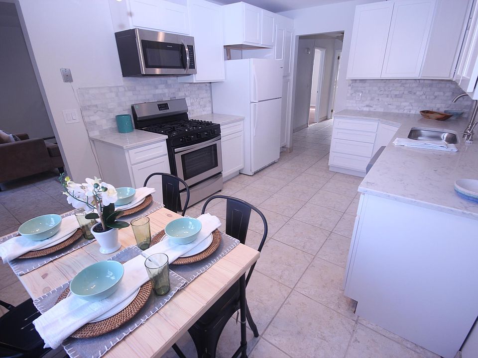 Stunning 5 rooms with NEW Quartz kitchen, Master bedroom suite, large 2nd bedroom and 2nd bath. Features formal dining room or office, walk in closet, storage, Central air and washer/dryer in the unit. Oversized windows and skylights allow for lots of natural light.
