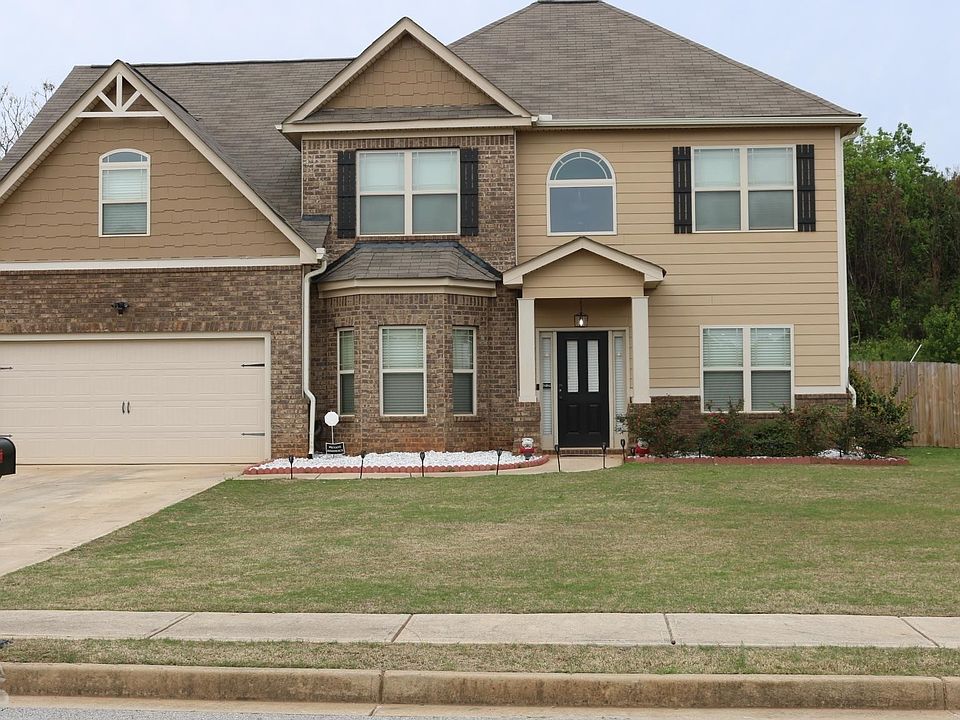 This home offers a great floor plan with the kitchen, breakfast area, and great room all open to each other. In the kitchen you will find granite countertops, stained cabinets, upgraded stainless steel appliances with tile backsplash. The separate dining room boasts of a coffered ceiling, arched entries, and a bay window. A separate living room works well as a game room, as used currently or office space without forfeiting a bedroom! The two-story foyer provides a grand entrance and ample light as you enter your sanctuary. Privacy fence in large backyard backs up to wooded non-buildable space. All of this and convenient to ample shopping, restaurants, parks nearby. The home has many upgrades during the ownership such as: Stainless steel appliances which include glass top stove, dishwasher with stainless steel tub, and upgraded vent hood. New premium LVP flooring throughout the entry way, formal dining room, kitchen, breakfast area and family room. The family room has a 55" Linear electric fireplace with 6 different flame colors and 12 color glass bed with custom built floating mantle! Frameless glass shower in master bathroom. New light fixtures in formal dining room, breakfast area, pendant lights at bar and foyer entry and a temperature sensitive color changing kitchen faucet. Bladeless ceiling fans with LED lighting in 2 secondary bedrooms. Privacy fence with hidden gate latches. Includes 2 large Hot water heaters, you will never run out of hot water! This large home has 5 Bedrooms with 1 bedroom and full bathroom connected on the main floor. The oversized owner's suite and sitting area with vaulted ceilings and two large walk-in closets. Three bedrooms on the upper floor along with the laundry room offers additional convenience.