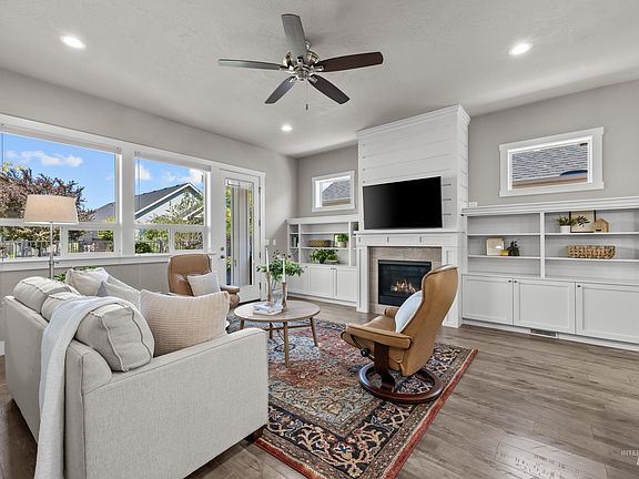 Welcome to your new home in the highly sought-after Paramount neighborhood! This single-story gem welcomes you w/ 3 bed, 2 bath, & an array of desirable features. The cozy gas fireplace sets a warm ambiance, complementing the modern laminate plank flooring & elegant quartz countertops. SS appliances, including a built-in microwave, make meal prep effortless. Practicality meets style w/ epoxy garage flooring, ensuring a clean & durable space. The open concept layout, complete w/ built-in cabinets & double cellular blinds perfect for entertaining. Retreat to the spacious primary bedroom w/ a dual vanity bath & a generous walk-in closet. Modern comforts include fiber optic internet, a new water softener, pressurized irrigation, & convenience to nearby schools, Orchard Park Shopping Center & the new Meridian library. This community offers a wealth of amenities, including parks, walking paths, a clubhouse, fitness facility, & 4 community pools, Don't miss the chance to call this delightful property home!
