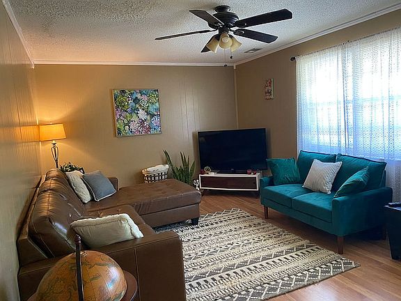 Cozy home in a quiet neighborhood. Three bedrooms, one and a half bath, large open kitchen with a large den/extra room. Spacious fenced backyard that includes a relaxing covered patio area and a large storage building with attached mower shed. Brand new AC unit installed May 2021. All kitchen appliances stay.