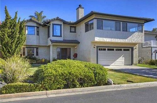 View website: http://3860adairway.ePropertySites.com - Ocean View 4 bedroom, 3 bath home situated on a private cul de sac just minutes to the beach. Dual master suites, one on the first level. Two spacious, secondary bedrooms on the main floor as well as remodeled kitchen with granite counters, gas stove, abundant cupboard space, pull outs and large window over the sink. The living room/dining area have a fireplace as does the great room upstairs, and can also be enjoyed from the kitchen eating area. Upstairs is a large great room with wetbar, refrigerator, granite counter and purified water. This room has gorgeous sunset views along with an ocean vista that can be enjoyed from the master suite and sun room as well. Perfect setting for large screen TV, reading, hobbies or office. The upper master bath has dual sinks, separate shower/tub and granite counter. Just off the dining area and master downstairs is a covered patio with skylights and ceiling fan - perfect for outdoor entertaining year round - and a relaxing spot for morning coffee or evening meals. The garage has extra space for puttering and builtin storage. Tankless water heater for efficiency.