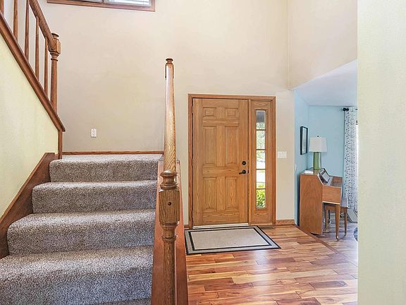You can't appreciate the space & layout of this home without actually getting inside & seeing it for yourself! Adorned with plenty of natural light, you'll appreciate the openness of the foyer when you walk in the front door. The kitchen with solid surface counters is large & has plenty of work space & cabinets. Main floor laundry & 1/2 bath off the garage entry is convenient. There's plenty of room on the main level to spread out & the upstairs is nicely laid out so everyone can feel like they have room to move around without bumping into one another. The primary bedroom has two generous closets & an additional large storage closet in the en suite bathroom. In the basement, you'll find a large rec room, wet bar, light-filled bedroom, a full bath & even more living space (in an L-shape that adds an additional 206 square feet.) Enjoy the patio off the walk-out basement or the deck off the family room on the main level. Mature trees offer privacy & a shed in the backyard make this a very relaxing & useful outdoor space. Siding and roof new in 2020. Carpet in 2022. 1/2 bath has new floor, vanity & faucet. Primary bath has new vanities, faucets & lights. New washer. All new carpet going in upstairs on 9/25/24!