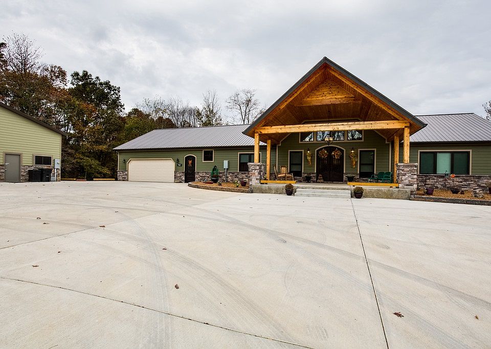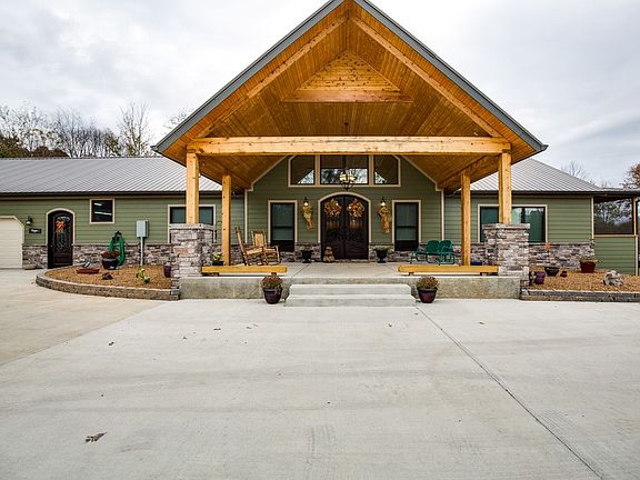 Beautiful, one of a kind retreat on 5+ acres of land just 15 minutes to downtown! Single level living with over 1400sqft of screened porches + over 2300sqft detached workshop to house extra cars, tour bus (power ready to accommodate), studio space, OR convert to in-law suite (already has full bath)...every last detail of this home is custom!