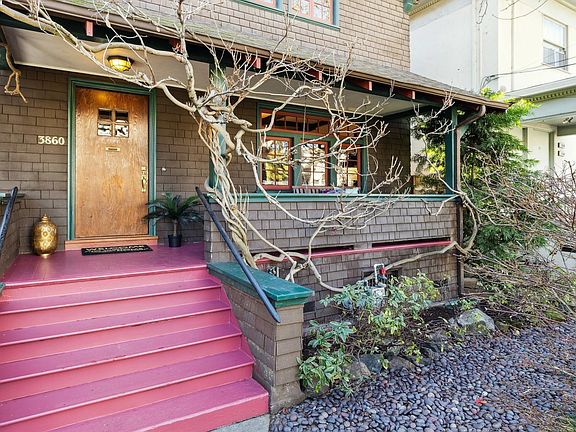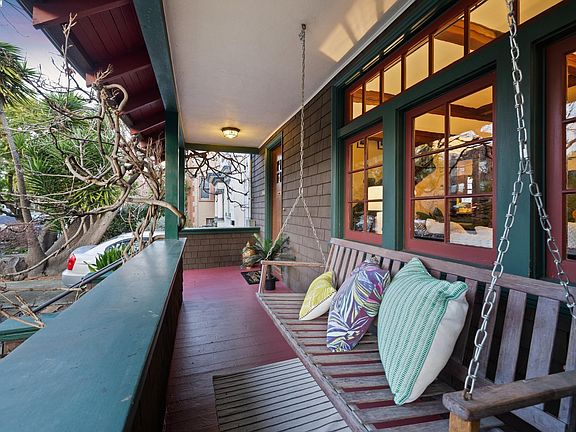 One block from vibrant Piedmont Avenue, enjoy gorgeous architecture and custom upgrades in this classic 3BD/1.5BA Craftsman main home with a separate full-service studio apartment. Rich architectural details span the 2162 SQFT home, including coffered ceilings, wainscoting, leaded glass built-in cabinetry, and pocket doors. From the welcoming foyer, step through original columns into the living room with a cozy fireplace and mullioned windows. The adjoining dining room has large windows and easy kitchen access. Blending modern features and classic charm, the kitchen offers top-of-the-line appliances, stackable laundry tucked into a closet, a powder room, and a glass door to the backyard oasis. Step onto the deck to relax, entertain, or enjoy a cup of tea in the gazebo. With raised beds and mature landscaping with flowering bird of paradise plants, the backyard is a verdant retreat. There is separate access to the ADU with full bathroom, kitchenette, & dedicated laundry hookups. Back upstairs, find a spacious primary, full bathroom, and two additional bedrooms - one with its own bonus sunroom! Modern updates include solar with backup batteries plus a newer heat pump system equipped with A/C. Everything is outside your front door: dining, yoga, Fentons Creamery, & nearby BART
