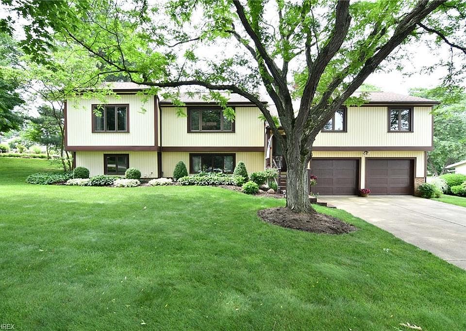 Immediate possession! Beautifully treed and landscaped private lot is the setting for 3860 Mahogany Uniontown, Ohio. Two story foyer entry leads to a formal living room which features a gas fireplace. Updated kitchen is fully applianced, and offers solid surface countertops, a breakfast bar and is open to the dinette. The formal dining room has great views of the deck and backyard, through a bay window. A family room with a second fireplace is in the lower level, along with a theater room, a half bath, and a mudroom/utility room, and laundry room. The private, park-like backyard has a patio, a fire pit, a heated (natural gas) above ground pool, and a storage barn/ playhouse. The formal dining room and fourth bed room was an addition to this already spacious home. Updates include, roof, septic system, electric panel, furnace, hot water heater, garage doors, garage floor ( epoxy flooring as used in car dealerships showrooms), vinyl deck, storm door, pool liner, ladder, heater, and sand filter, and much more. Lots of living space, inside and out!