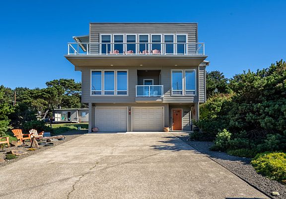 House is located in the private and peaceful area on the NW side of Lincoln City. This ocean view property has open floor design with walls of windows and decks provide breathtaking views of crashing waves and gorgeous sunsets! Gourmet kitchen with cement counters and top of the line appliances. Contemporary design, yet very warm and inviting.